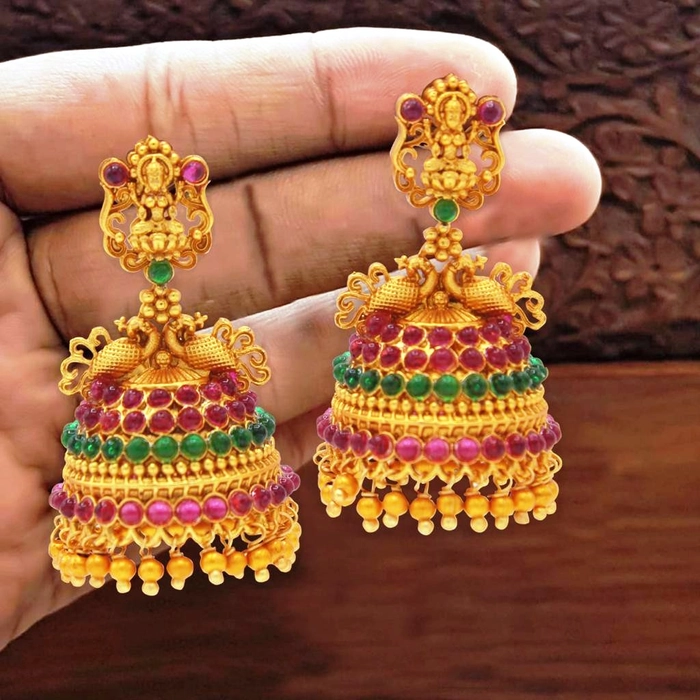 Whether you're attending a wedding, a special occasion, or simply want to add a touch of glamour to your everyday ensemble, these jhumki earrings are a must-have. Their beautiful design and timeless appeal will make you the center of attention wherever you go.